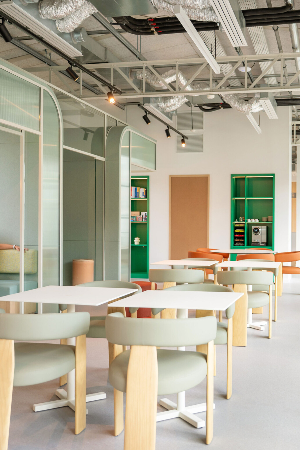 Archimage a préservé le caractère industriel des bâtiments tout en y intégrant des couleurs vives et vibrantes pour insuffler chaleur, positivité et énergie collective.